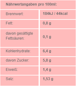 Tomaten (80%), Tomatenmark, Paprika (2%), Zucker, Salz, Knoblauch, Sonnenblumenöl, modifizierte Maisstärke, Chili, Kräuter, Gewürze, Säuerungsmittel: Citronensäure.